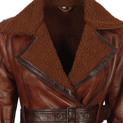 Introducing our latest Tomb Women’s Brown Sherpa Collar Leather Jacket one of the most appealing and classical styles for a classical and fashion-forward way. Owning one of our Cozy Sherpa collar coat can be an exciting piece for your wardrobe. These Asymmetrical zip leather jacket are carefully designed for colder weather and offer extra insulation against chilly weather. These Sherpa collar jacket are extremely versatile and perfect for layering over different outfits. You can make a Distinctive fashion statement with these Tomb Women’s leather jackets available in a range of sizes to fit every type of body. Our Brown leather jacket women’s are adorned with embellishments and these quality embellishments such as studs and patches add a fashionable flair to them.