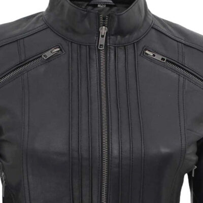 Introducing one of our fashion-forward Black Fitted Leather jackets for Women with Brown Detailing for a sophisticated and timeless look. At Natural Jackets, we are offering the most authentic Real Lambskin Leather Jackets. By wearing this you can easily attain a gorgeous and timeless look the detailing on this jacket is something that you are looking for. If you are looking for a Sophisticated Women’s Leather Jacket this Stylish Black Leather jacket is the perfect answer to your question. This Zip Closure Leather Jacket offers maximum security from dust and weather not only this but this Women’s Leather Jacket Brown Collar can be the most iconic piece you could ever have. Perfect for every kind of occasion and casual look these Chic Women’s Leather Jacket are the perfect combination of durability and versatility. One of the best parts of these Black and Brown Leather Jacket is that they can be perfect for every kind of body type and shape for a modern style.