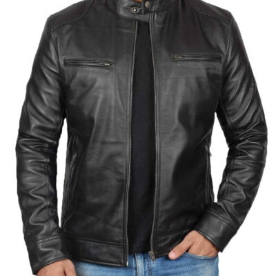 Superior lambskin leather offers long-lasting quality in this Dodge Mens Lambskin Black Cafe Racer Leather Jacket. Our online store has this jacket in every size, from extra small to extra extra large. Wearing this jacket is a delight and it will last you a long time. Wearing this jacket is a delight because of its premium leather structure and airy lining. This jacket can be tossed in the washing machine and let dry naturally. The Dodge Mens Lambskin Black Cafe Racer Leather Jacket has weatherproofing for chilly weather and breathable material for warmer weather.
