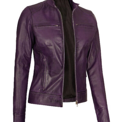 Introducing our incredible Dodge Womens Purple Cafe Racer Leather Jacket which is an essential piece of apparel that will never go out of style and always be one of the trendiest options that you own. Wearing our genuine lambskin leather jacket will be a wise investment because it is cozy and convenient. When you’re wearing this fashionable leather jacket, hazards like dust and strong winds remain far away. Those women who ride motorcycles and value their safety will find this to be the only feasible choice. Layers upon layers of pattern come together in this fascinating jacket. It indicates that you should look elsewhere for a stunning leather motorcycle jacket for women than this Dodge Womens Purple Cafe Racer Leather Jacket.