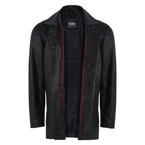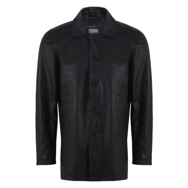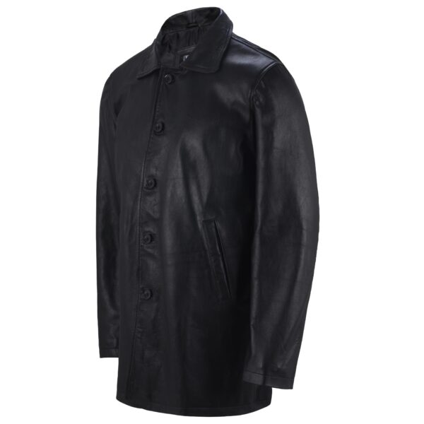 Genuine Men’s Black Leather Coat Button Style