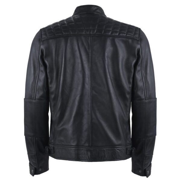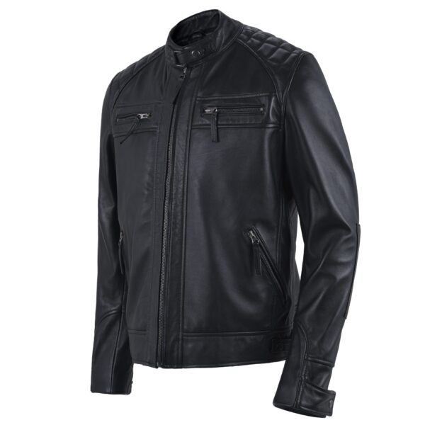 Superior lambskin leather offers long-lasting quality in this Dodge Mens Lambskin Black Cafe Racer Leather Jacket. Our online store has this jacket in every size, from extra small to extra extra large. Wearing this jacket is a delight and it will last you a long time. Wearing this jacket is a delight because of its premium leather structure and airy lining. This jacket can be tossed in the washing machine and let dry naturally. The Dodge Mens Lambskin Black Cafe Racer Leather Jacket has weatherproofing for chilly weather and breathable material for warmer weather.