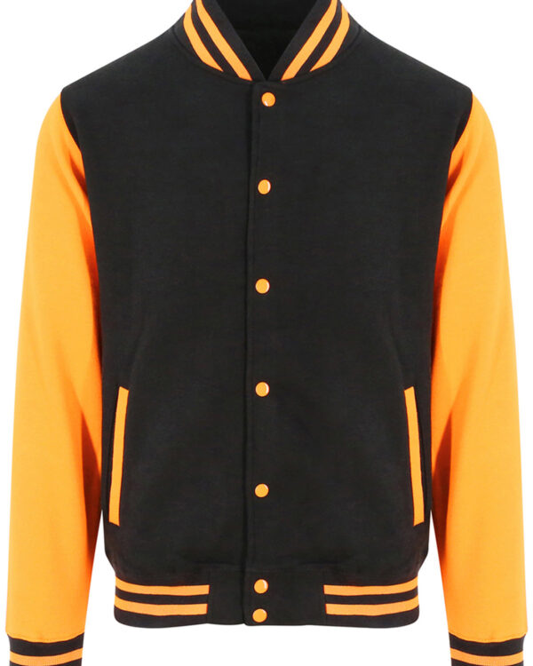 Jet Black And Orange Crush Heavyweight Letterman Jacket