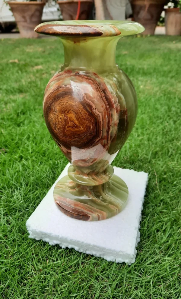 Enhance your home with timeless beauty through the JK Artistic Onyx Flower Vase. Handcrafted from 100% natural onyx stone, each vase showcases unique patterns and colors, making it a one-of-a-kind décor piece. Perfect for fresh flowers, artificial arrangements, or as a standalone statement of elegance.