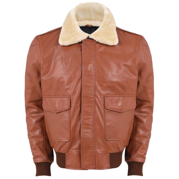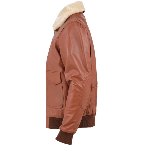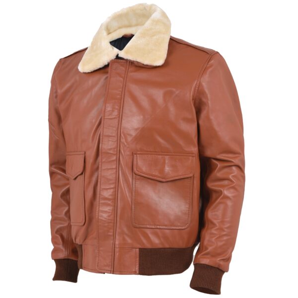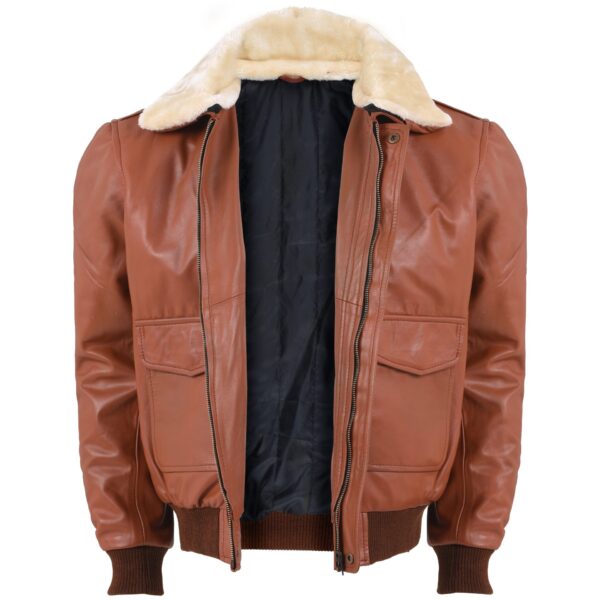 Men’s Brown Leather Aviator Bomber Jacket Fur Style