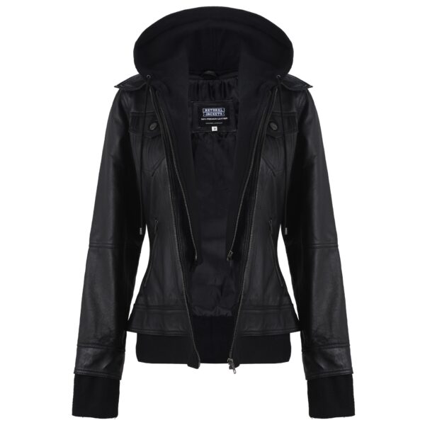 Onyx Women’s Black Leather Bomber Jacket With Hood