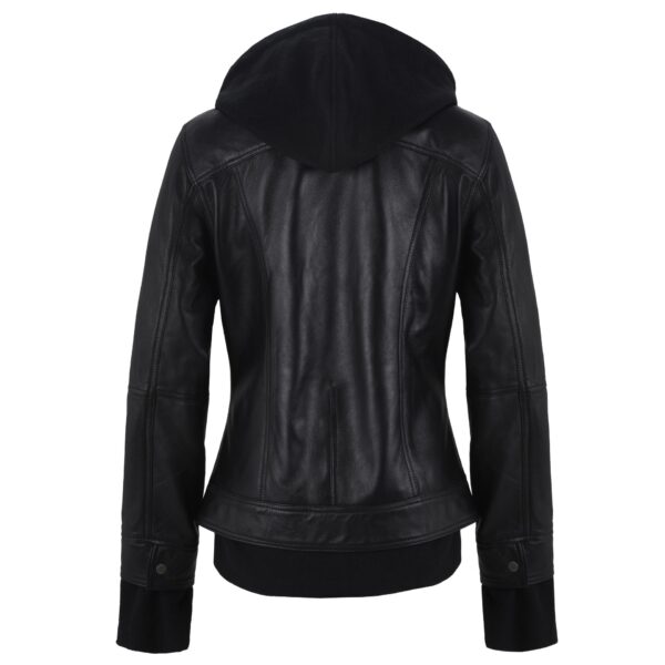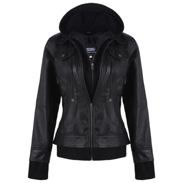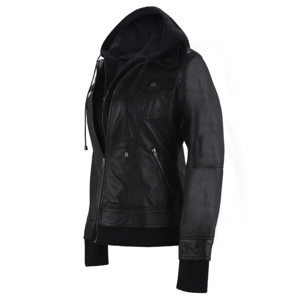 This women’s leather jacket with a hood is just the perfect wardrobe choice to keep you looking chic and feel comfortable because it’s designed with quality materials that feel soft and smooth from the first wear, and it’ll only get better over time. Its leather has a natural softness that sits perfectly on your shoulders and adjusts to your shape, so it’s as comfortable as it is stylish. The structured shoulders and streamlined fit make this four-pocket jacket easy to dress up, while the hoodie keeps it grounded for a relaxed, everyday feel. The front of this jacket has got a zip-up closure that’s as functional as it is fashionable to make you look good. Its dual zippers let you adjust your fit, so it’s easy to style and comfortable however you wear it.Â