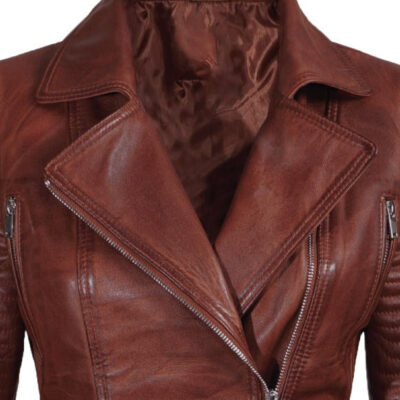 Introducing the Cognac Asymmetrical Hand Waxed Leather Biker Jacket Women, an elegant piece that radiates modren style and evokes a retro vibe. This jacket is not only fashionable, but it also flatters and shapes any body type. This is a great option for anyone interested in biker culture fashion who is searching for a good biker jacket. This motorbike jacket provides insulating and it is lighter in weight than other options. You can wear this jacket with practically everything due to its adaptable style. With its modren style and practical design, this women’s leather biker jacket is sure to become a favourite. In along with keeping you warm, this Cognac Asymmetrical Hand Waxed Leather Biker Jacket Women will shield you from outside influences.