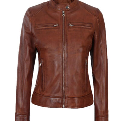 An enduring classic, the Dodge Womens Cognac Cafe Racer Leather Jacket is a must-have. Our authentic lambskin leather jacket will serve you well for a long time and keep you warm and comfortable. This stylish leather jacket will keep the dust, high winds, and other misfortunes at a distance. This is the ideal riding alternative for female bikers who want to keep safe while riding. This jacket is an interesting combination of several designs. So, if you’re seeking a beautiful leather biker jacket, go beyond this Dodge Womens Cognac Cafe Racer Leather Jacket.