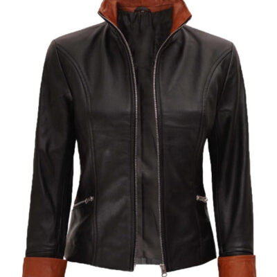 Introducing one of our fashion-forward Black Fitted Leather jackets for Women with Brown Detailing for a sophisticated and timeless look. At Natural Jackets, we are offering the most authentic Real Lambskin Leather Jackets. By wearing this you can easily attain a gorgeous and timeless look the detailing on this jacket is something that you are looking for. If you are looking for a Sophisticated Women’s Leather Jacket this Stylish Black Leather jacket is the perfect answer to your question. This Zip Closure Leather Jacket offers maximum security from dust and weather not only this but this Women’s Leather Jacket Brown Collar can be the most iconic piece you could ever have. Perfect for every kind of occasion and casual look these Chic Women’s Leather Jacket are the perfect combination of durability and versatility. One of the best parts of these Black and Brown Leather Jacket is that they can be perfect for every kind of body type and shape for a modern style.