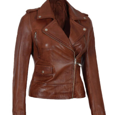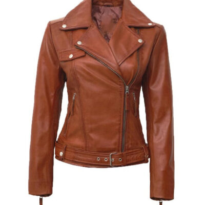 Introducing one of our finest Amber Womens Cognac Asymmetrical Leather Moto Jacket perfect for your bike rides. These moto jackets are wind and weather-resistant and protect from wear and tear. The extremely adaptable color of our Amber Womens Cognac Asymmetrical Leather Moto Jacket makes it easy to wear with every kind of dressing and clothing. These original lamb-skin jackets are durable and best in quality.