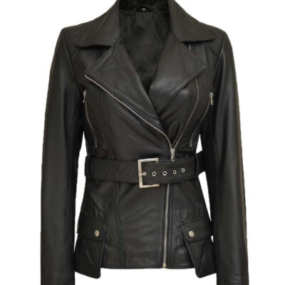 Presenting our Asymmetrical Black Four Pocket Belted Moto Jacket, skillfully crafted from premium lambskin leather to infuse a stylish vibe for its wearer. This jacket not only embodies fashion but also boasts remarkable durability. Given the timeless trend of leather outerwear, this lambskin jacket promises longevity and exceptional adaptability, seamlessly complementing any kind of outfit. The addition of a leather waist belt enhances the overall aesthetic, contributing to a stylish and perfectly fitted look.