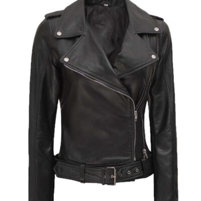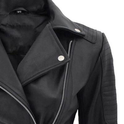 Here is an introduction to our super cool Amber Womens Black Leather Moto Jacket in Asymmetrical Style which not only focuses on the qualities of a classic leather jacket but offers a modern touch to it. These moto jackets protect against wind, rain, and accidents. With quality leather, these jackets also offer quality zippers, embellishments, and seamless finish. We offer all sizes in these Amber Womens Black Leather Moto Jacket in Asymmetrical Style which can fit everyone easily. This jacket includes fine stitching and styling options of armor with leather quality. We use quality inner lining of polyester material with asymmetrical stylish zip closure.