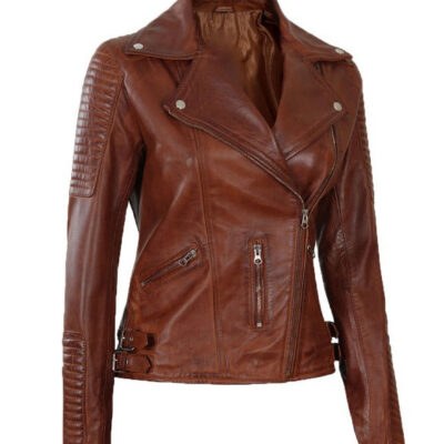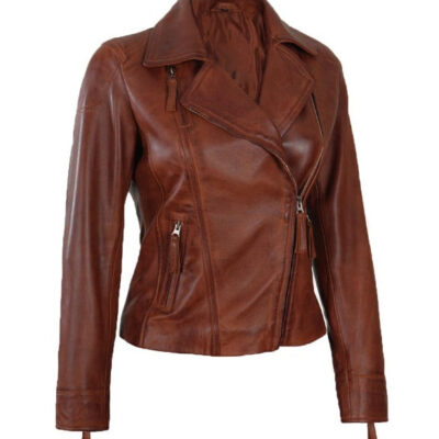 Introducing the Cognac Asymmetrical Hand Waxed Leather Biker Jacket Women, an elegant piece that radiates modren style and evokes a retro vibe. This jacket is not only fashionable, but it also flatters and shapes any body type. This is a great option for anyone interested in biker culture fashion who is searching for a good biker jacket. This motorbike jacket provides insulating and it is lighter in weight than other options. You can wear this jacket with practically everything due to its adaptable style. With its modren style and practical design, this women’s leather biker jacket is sure to become a favourite. In along with keeping you warm, this Cognac Asymmetrical Hand Waxed Leather Biker Jacket Women will shield you from outside influences.