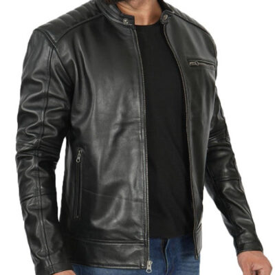 The Black Cafe Racer Leather Jacket for Men with a Padded Shoulder goes well with any stylish outfit. The lamb skin leather used to make these jackets is perfect and will last many years. The zippers and other features on the jacket are just as impressive as the high-quality leather. Because they are thin and light, these jackets are very easy to carry. They are also very flexible regarding how you can wear them. Our Black Cafe Racer Leather Jacket for Men with Padded Shoulders is a stylish piece you might want to check out.