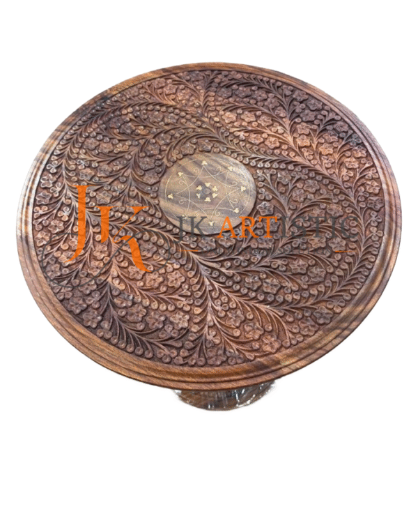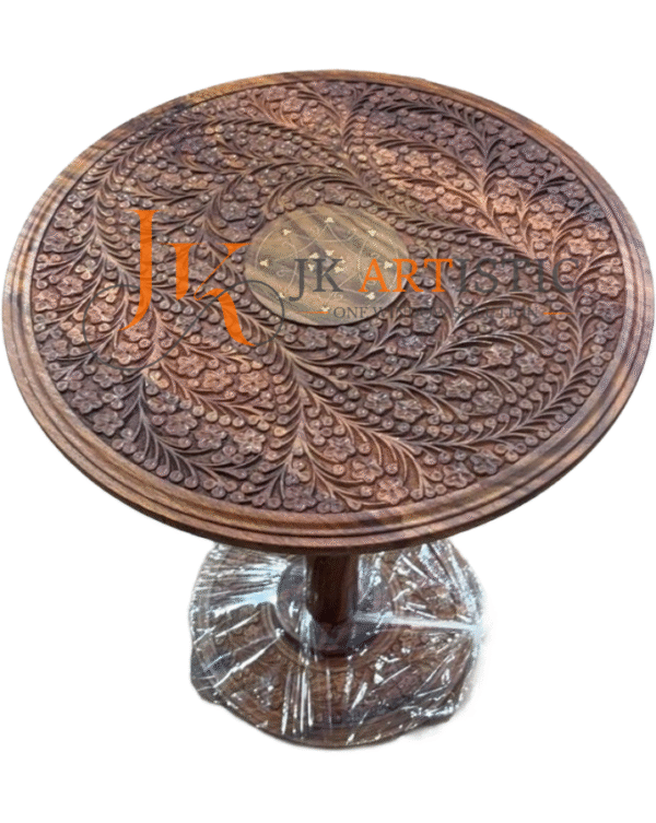 Bring a touch of vintage charm to your space with this hand-carved rosewood pedestal table by JK Artistic. Inspired by 1970s design and shaped by skilled hands it blends old-world elegance with natural warmth.