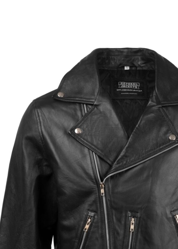 If you’re looking for a biker jacket, why not choose this all-time classic black leather biker jacket? Inspired by the Terminator 2 Arnold Schwarzenegger black leather biker jacket, it has three tilted zipper pockets and an asymmetrical zipper front that makes it look rebellious. Its sleek black leather design replicates the biker culture perfectly. Every detail of this biker-style makes it look rugged and gives a very confident style.