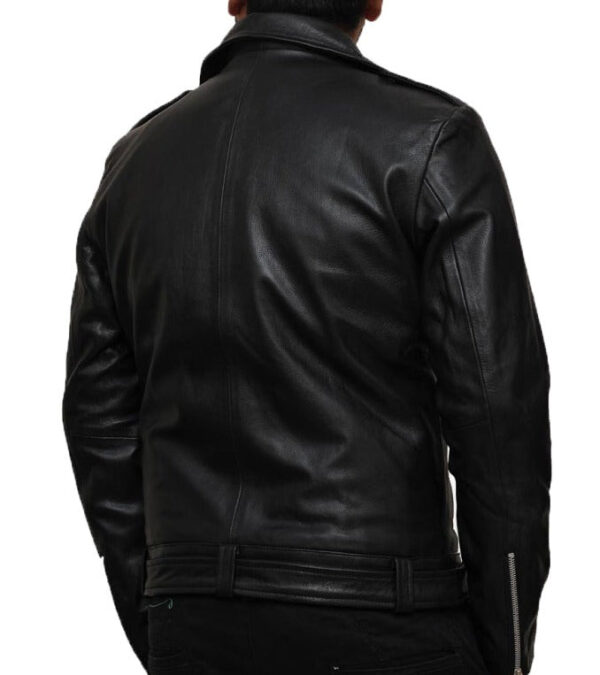 Presenting our Asymmetrical Black Four Pocket Belted Moto Jacket, skillfully crafted from premium lambskin leather to infuse a stylish vibe for its wearer. This jacket not only embodies fashion but also boasts remarkable durability. Given the timeless trend of leather outerwear, this lambskin jacket promises longevity and exceptional adaptability, seamlessly complementing any kind of outfit. The addition of a leather waist belt enhances the overall aesthetic, contributing to a stylish and perfectly fitted look.